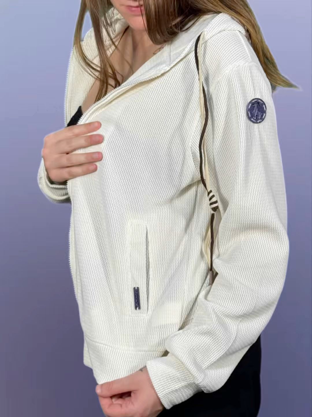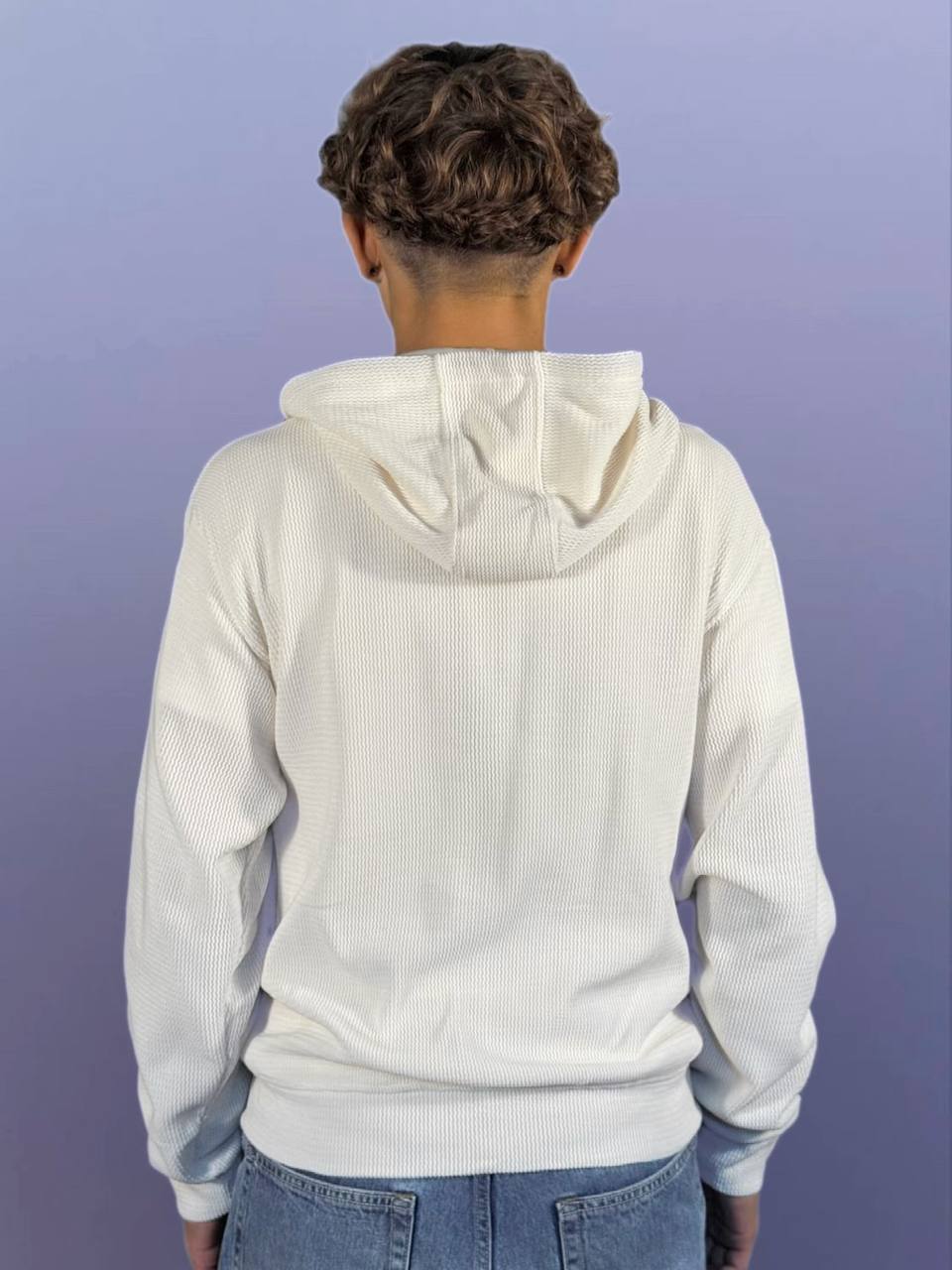 Felpa con cappuccio in tessuto waffle color avorio con logo 3D SIFR